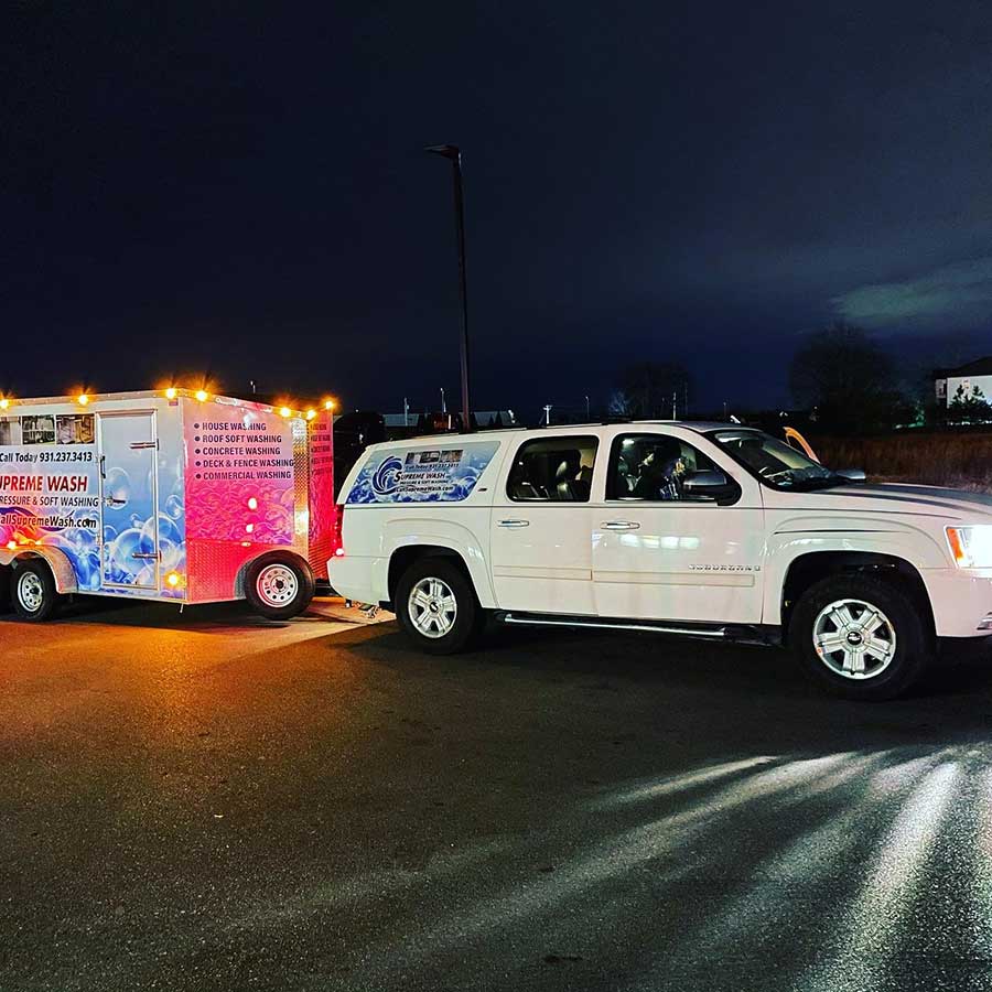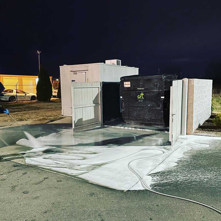There are six Checkers Drive-In restaurants in the Nashville area where Supreme Wash Pressure and Soft Washing perform a regular commercial pressure washing service. We happen to have the lights on the other night, so we took the opportunity to take a couple of pictures. These restaurants with drive-thrus are notorious for having greasy rings around the building. So we head out in the middle of the night and clean it up along with the dumpster pads.