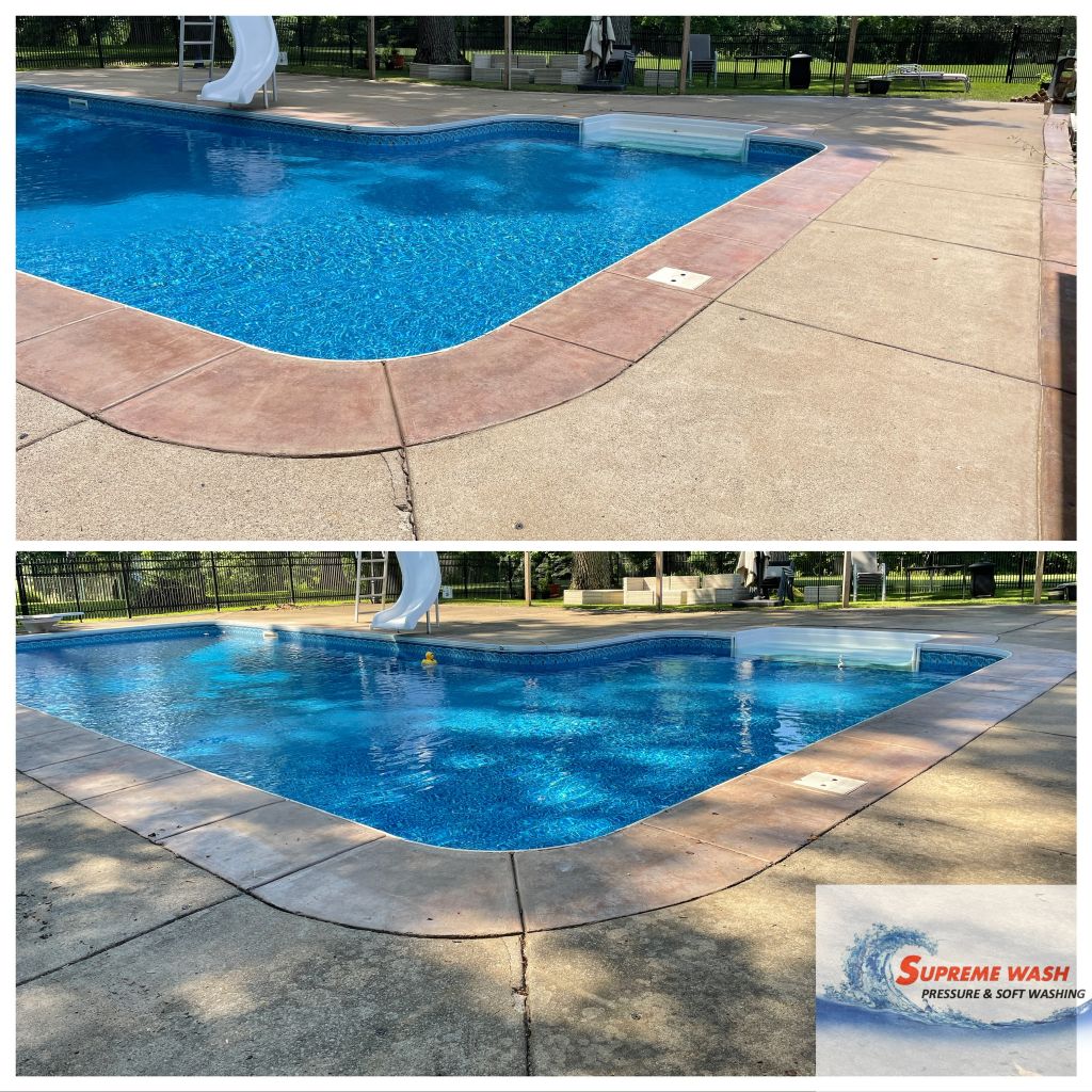 This Concrete Driveway and Pool Deck Cleaning in Springfield, TN turned out absolutely amazing. Pressure Washing or Power Washing your concrete is a key element in maintaining a safe and slip free surface when the concrete is wet especially around your pool. Not to mention the 100% improvement in appearance that makes for an impressive upgraded curb appeal from the front of your house. Supreme Wash Pressure & Soft Washing aims to please.